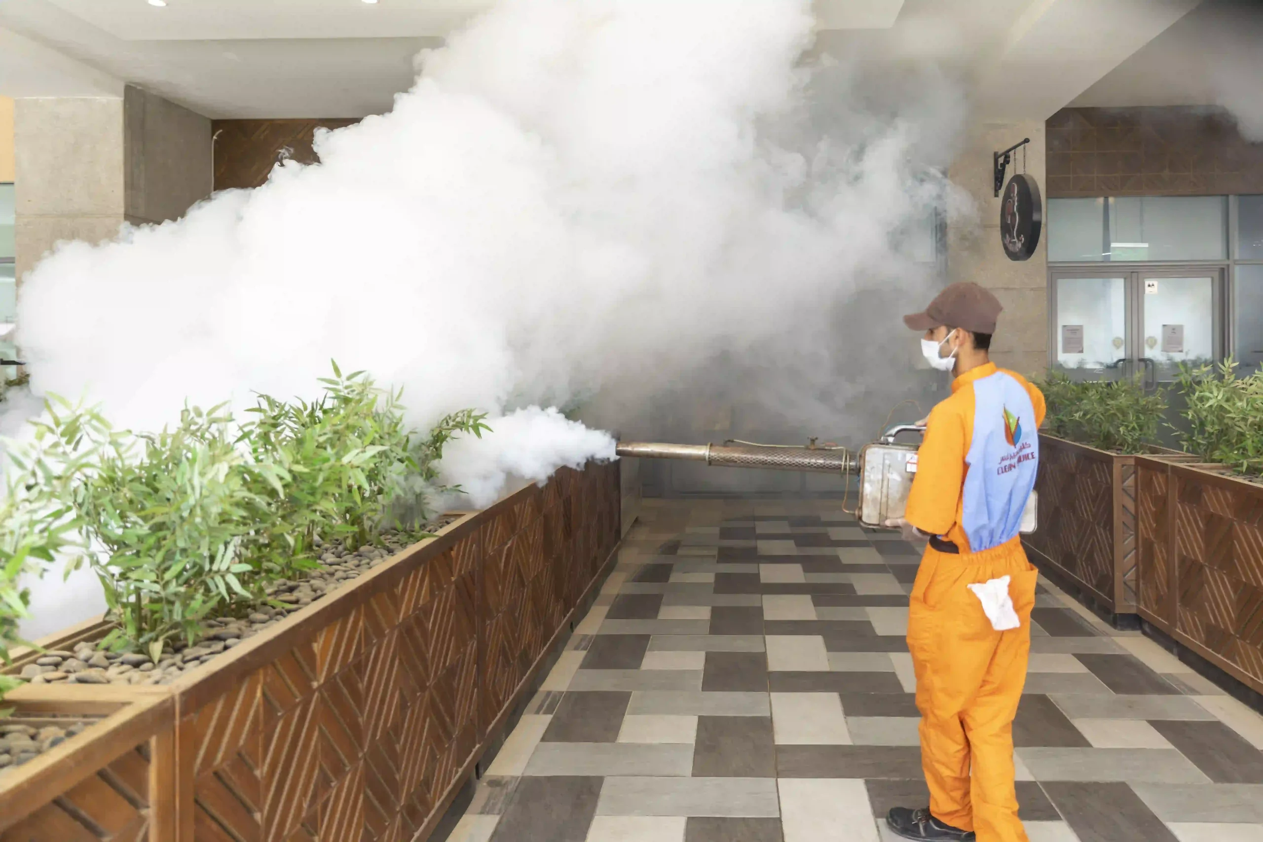 - نستخدم تقنيات الرش الضبابي بمبيدات آمنة ومصرّح بها للوصول إلى أماكن اختباء البعوض بشكل فعال.